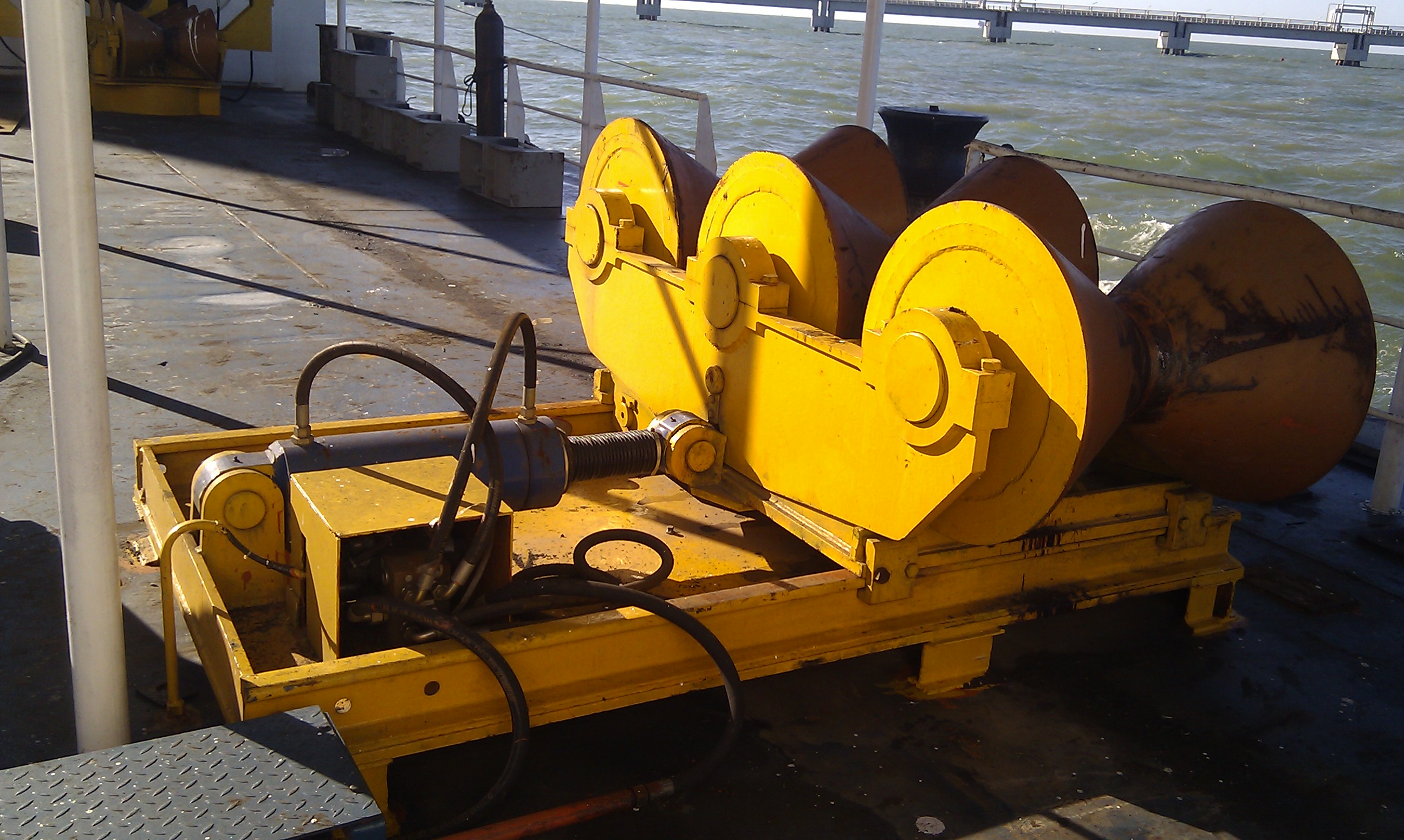 项目核心配置75T电动张紧器、10T软管张紧器及管线对口输送装置,精准覆盖管线张力调节、精准对接核心环节;配套引入海缆埋设/挖沟设备,完成施工海域海床预处理,筑牢铺设安全基础。